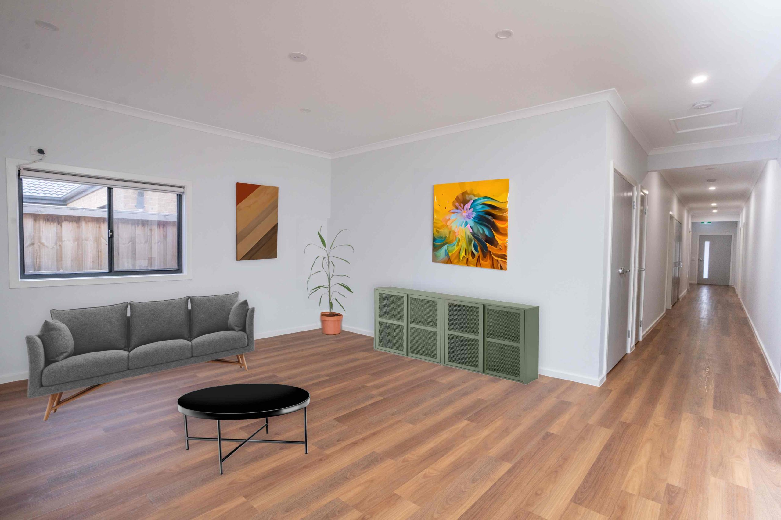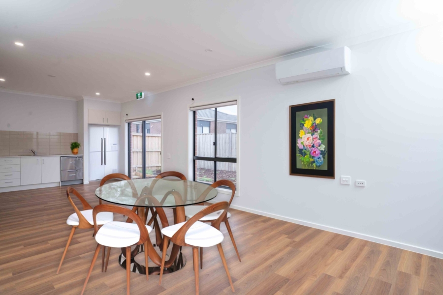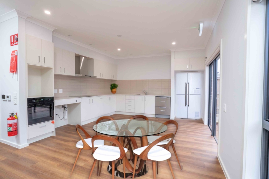 Featuring 4 spacious participant bedrooms, each with a private ensuite and built-in robe, this home fosters independence and a sense of ownership. All ensuites have accessible features and ensures all participants have a comfortable and adaptable experience. Additionally, split system heating and cooling in each bedroom allows for personalised temperature control.
